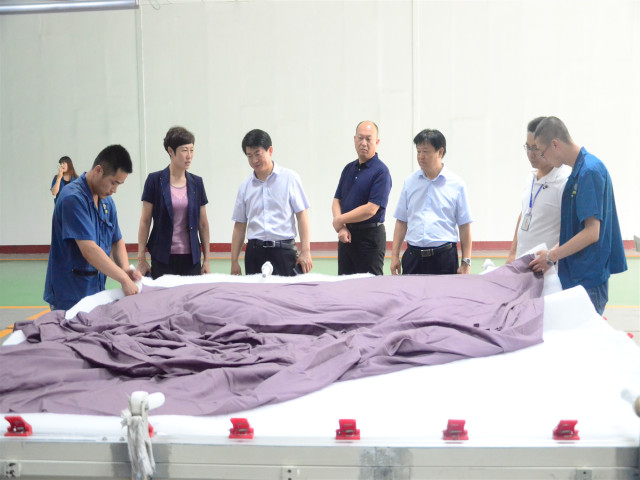人力行政總監孫玉濤介紹了公司發展的相關情況,工會主席鄭安江就公司在企業文化建設、員工利益保障等相關工會工作向調研組進行了詳細匯報。隨后,胡少華一行與公司職工代表面一車間李西洪、家紡成品車間朱永亮和服裝車間溫永霞進行了交流座談,詳細了解了公司在職工培養、福利待遇、權益維護等方面的具體情況。調研組一行先后參觀了公司工程技術研究院、創意中心、花布智能生產車間、家紡成品展廳及車間等處。胡少華表示,公司作為紡織印染行業的龍頭企業,取得的成績有目共睹,并且公司在維護職工權益、企業文化建設、提升職工素質等方面的工作經驗值得借鑒和推廣。