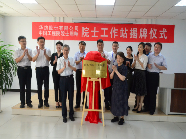 8月2日,公司與中國工程院院士周翔合作建立的院士工作站,在公司科技產(chǎn)業(yè)園舉行揭牌儀式。儀式由公司黨委書記、董事長王力民主持并介紹華紡科技發(fā)展情況,濱城區(qū)委常委、組織部長王麗,中國工程院院士、東華大學(xué)教授周翔,濱州市副市長曹玉斌先后致辭;周翔院士、曹玉斌副市長為華紡院士工作站揭牌。