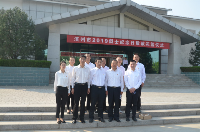 9月30日上午,濱州市2019烈士紀念日敬獻花籃儀式在渤海革命老區紀念園廣場舉行;公司員工代表在總經理閆英山帶領下,參加當天的敬獻花籃儀式并分別向烈士紀念墻敬獻花束。
