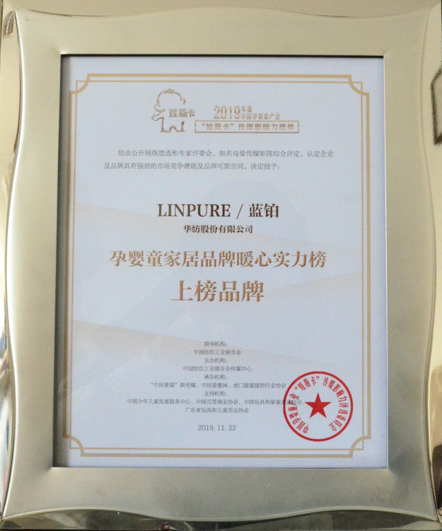 導讀:日前,公司LINPURE/藍鉑榮登“孕嬰童家居品牌暖心實力榜”,認定企業及品牌具有強勁的市場競爭潛能及品牌可塑空間。