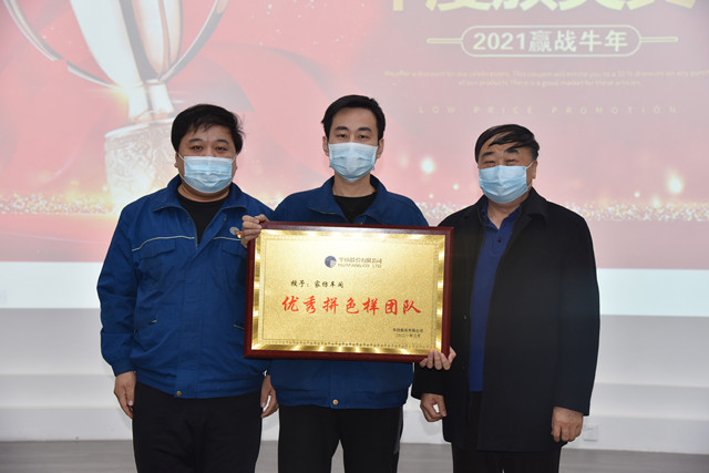 會上,公司對在2020年度技術團隊綜合評比及技術人員打樣技能綜合評比等一系列工作中,涌現出的團隊和技術人員進行了表彰。綜合評比團體獎為家紡車間拼色樣團隊;打樣技能優秀個人33名,其中一等獎5名,分別為沙寧寧、劉欣梅、王佳、邊文玉、隆煥芹;二等獎15名,分別為王乂龍、張雪、張鳳英、杜文強、張瑞敏、王景濤、段娟娟、王汝雪、尹萍、趙睿琪、劉洪芹、劉瑩、郭萍萍、張新華、張男男;三等獎13名,分別為劉輝、齊琳峰、李丹、鄭凱、趙瑞、郭喬玲、梁洪麗、馬珊珊、張寶敏、陳延銳、魏建航、孫壽凱、董海永。