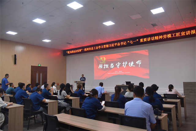 導讀:由濱州市總工會主辦的“我為群眾辦實事”學習宣傳貫徹習近平總書記“七一”重要講話精神勞模(工匠)宣講報告會首次宣講,在公司會議中心舉辦。