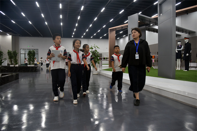 9月23日,濱城區玉龍湖小學四年級學生在老師帶領下走進公司,實地參觀了公司的生產車間以及部分展廳,現場體驗了家紡產品驗整及包裝等生產環節,感受勞動的艱辛與快樂。