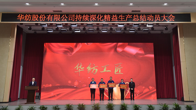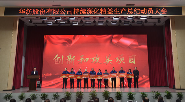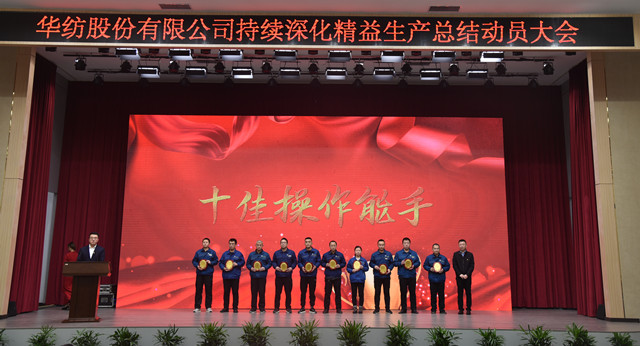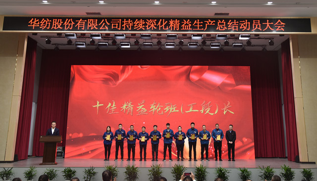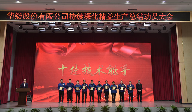會上,公司董事長盛守祥為2021年度優秀團隊、勞動模范頒獎;總經理閆英山為華紡工匠、十佳精益輪班(工段)長、十佳技術能手、十佳操作能手、優秀員工代表頒獎;質量總監李風明為優秀CQI項目、創新攻關項目、優秀精益機組代表頒獎。公司對在過去一年的“我與效益提升”工作中表現良好的原料運營公司等10個部門給予了通報表揚;“退城進園”暨“智能綠色工廠建設項目”整體建設與搬遷,成為“2021-華紡年度感動”內容。