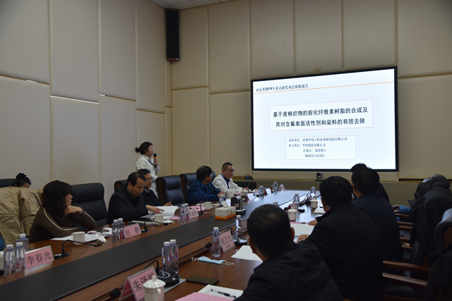 導讀:1月14日,山東省重點研發計劃(公益類)項目“基于廢棉織物的胺化纖維素樹脂的合成及其對含氟表面活性劑和染料的有效去除”項目驗收會議在公司舉行。