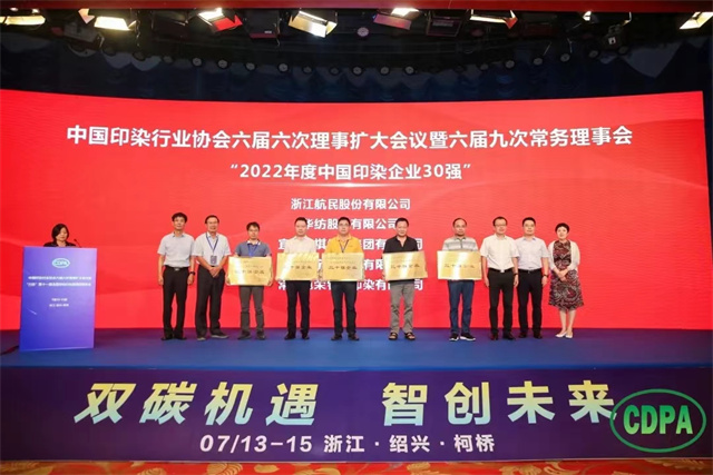 7月14日,中國印染行業(yè)協(xié)會六屆六次理事擴(kuò)大會議暨六屆九次常務(wù)理事會在浙江紹興召開。會上,中國印染協(xié)會發(fā)布了“2022年度中國印染企業(yè)30強”名單,公司以在多方面的綜合成效躋身這一行列。