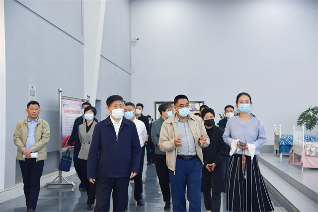 楊菡一行首先參觀了公司智云中心、服裝面料公司、花布公司、家紡公司、創(chuàng)意中心、工程技術研究院等,盛守祥向楊菡一行介紹了公司整體發(fā)展、智能制造、轉型升級等情況。