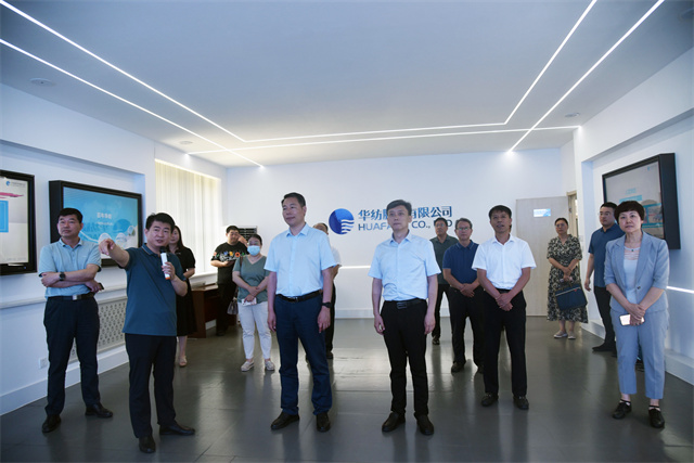 隨后,在孫玉濤的陪同下,盧飛一行先后參觀了智云中心、檢測中心、財務部、集中辦公區、面料公司、家紡公司、花布公司、家紡研發、研究院等處。