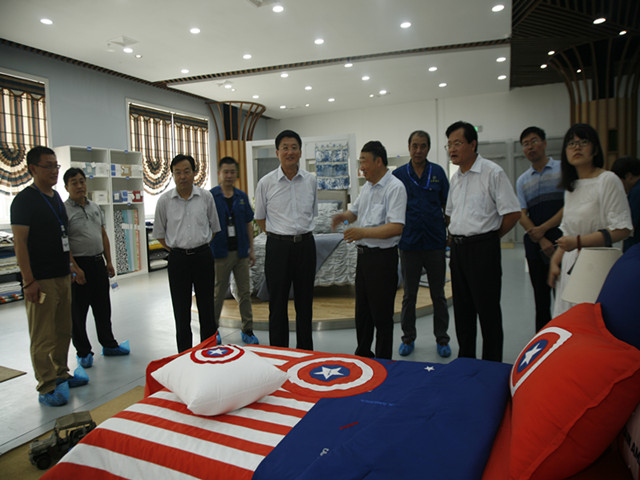 8月2日,濱州市市委常委、常務副市長張凱來到公司調研指導工作,公司黨委書記、董事長王力民陪同張凱一行參觀了科技產業園中的花布產品設計部、花二車間、污水處理、家紡展廳、家紡成品車間、工程技術研究院(含博士后工作站)及公司檢測中心、家紡車間、面一車間、熱力車間、中控室、服裝車間等處所,并向張凱一行介紹了公司“一體兩翼”發展及整體轉型升級情況。