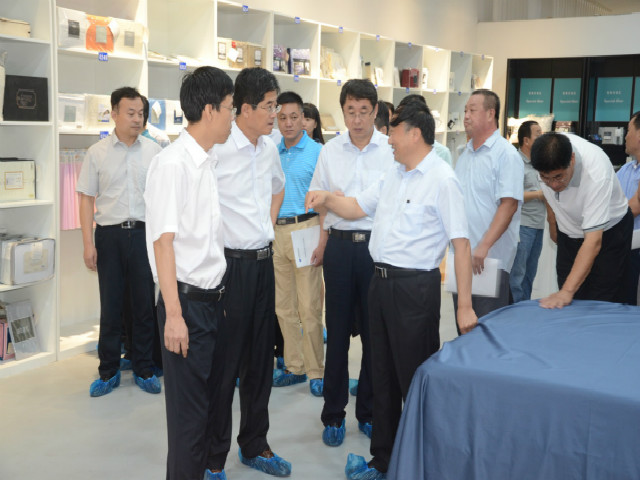 公司黨委書記、董事長王力民陪同考察團參觀考察,并向考察團重點介紹了公司在轉型升級、技術創新、品牌建設等方面所取得的成效以及管理創新經驗。考察團一行參觀了花布二車間、家紡成品車間等生產現場及家紡展廳、工程技術研究院。