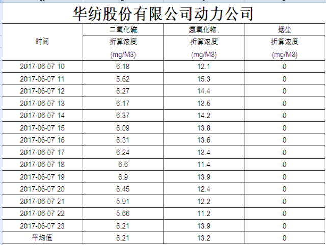 煙氣排放數據信息公開2017.6.7數據